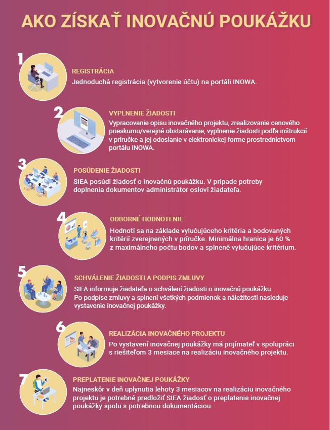 - Prostredníctvom inovačných poukážok bude podniku poskytnutá priama finančná pomoc, potrebná na prístup k profesionálnym zručnostiam, službám alebo znalostiam, ktoré umožnia presadiť nápad alebo produkt, či už na domácom trhu alebo na trhu mimo Slovenska.
